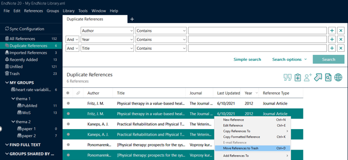 Endnote: find and remove duplicates