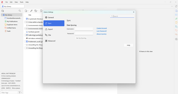 - Start up the Zotero client. At the top, click on 'Edit' > 'Settings' and go to the 'Sync' tab. There you can enter your account information so that your resource library can be synced and you can access the resources you store from anywhere.