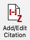 If you want to insert a citation, hover your cursor where you want your citation to go and then click 'Add/Edit Citation'.